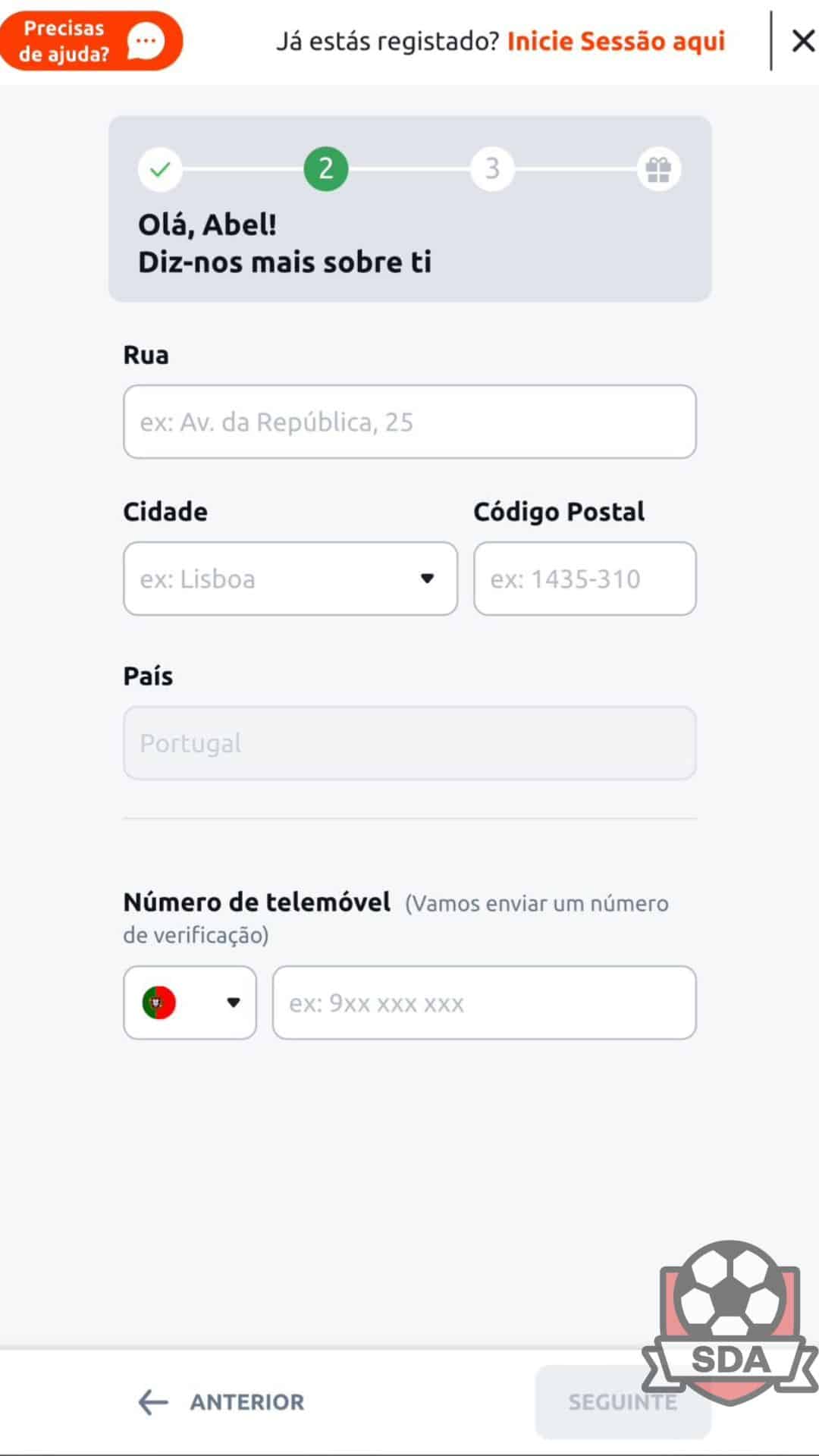 3. Insere teus dados de morada. Posteriormente, pode ser necessário enviar um comprovativo de morada.