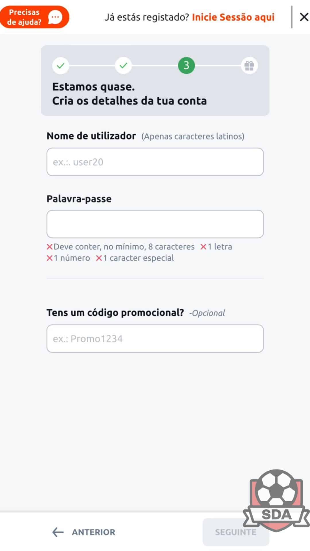 4. Escolhe o nome de utilizador e palavra-passe. Lembre-se de memorizar ou guardar essas informações em local seguro.