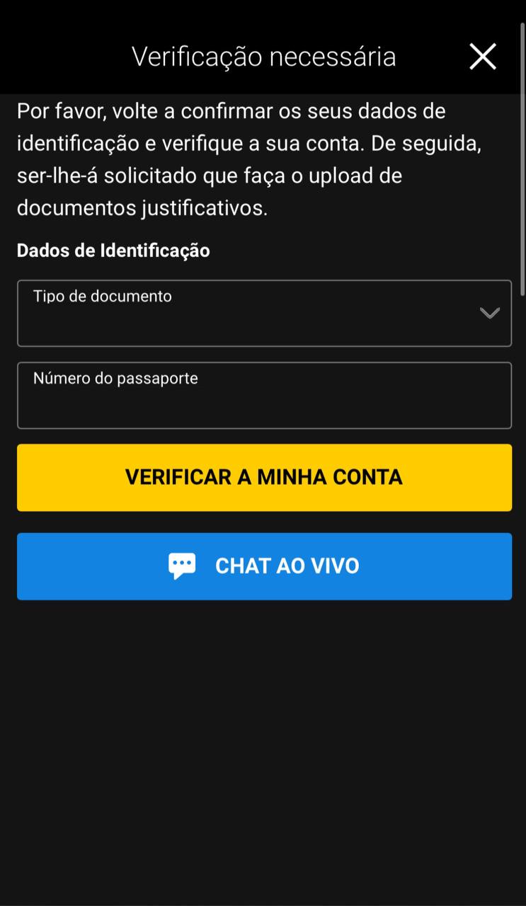 5. Verifique a conta com o documento informado para começar a fazer os depósitos com a Bwin Portugal.