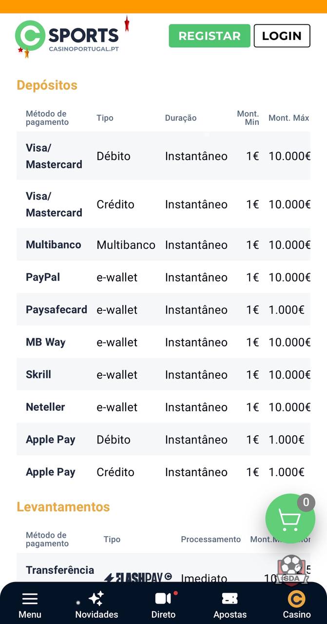 - e-Wallets: deposita com as e-wallets mais populares no mercado português;