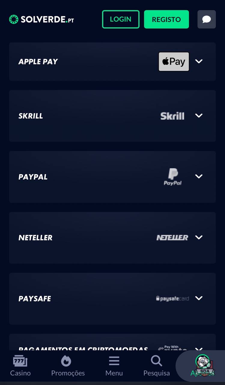 3. Escolhe o método de pagamento : A Solverde oferece diferentes opções, como: