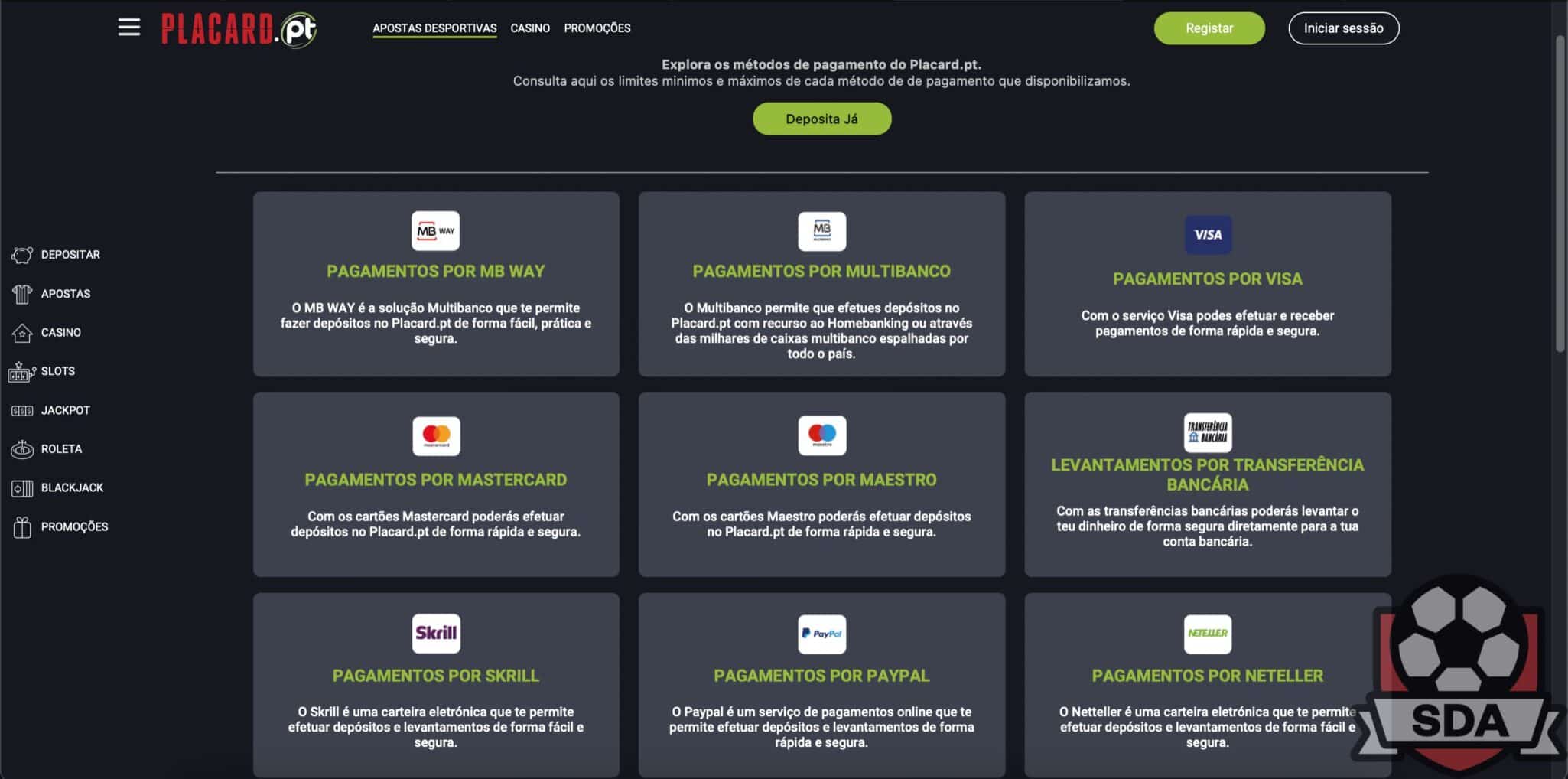 Sem dúvidas, o Placard.pt é um dos sites de apostas com maior leque de métodos disponíveis em Portugal. Outra vantagem é o fato do depósito mínimo ser apenas 5€, enquanto que na maior parte dos concorrentes é de 10€.